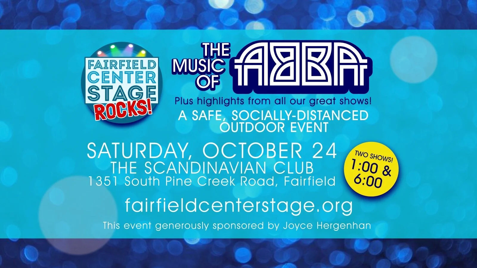 Fairfield Center Stage, a local community theater group, will present an outdoor, socially-distanced ABBA-themed concert on the back lawn of The Scandinavian Club on Saturday, October 24th at 1:00 PM and 6:00 PM. FCS musicians and singers will recreate the greatest hits of ABBA, featuring a house band and rotating cast of singers performing classics such as “Dancing Queen” and “Waterloo” at this one-night-only concert, which will also feature an opening set of highlight songs from previous FCS musical productions.
