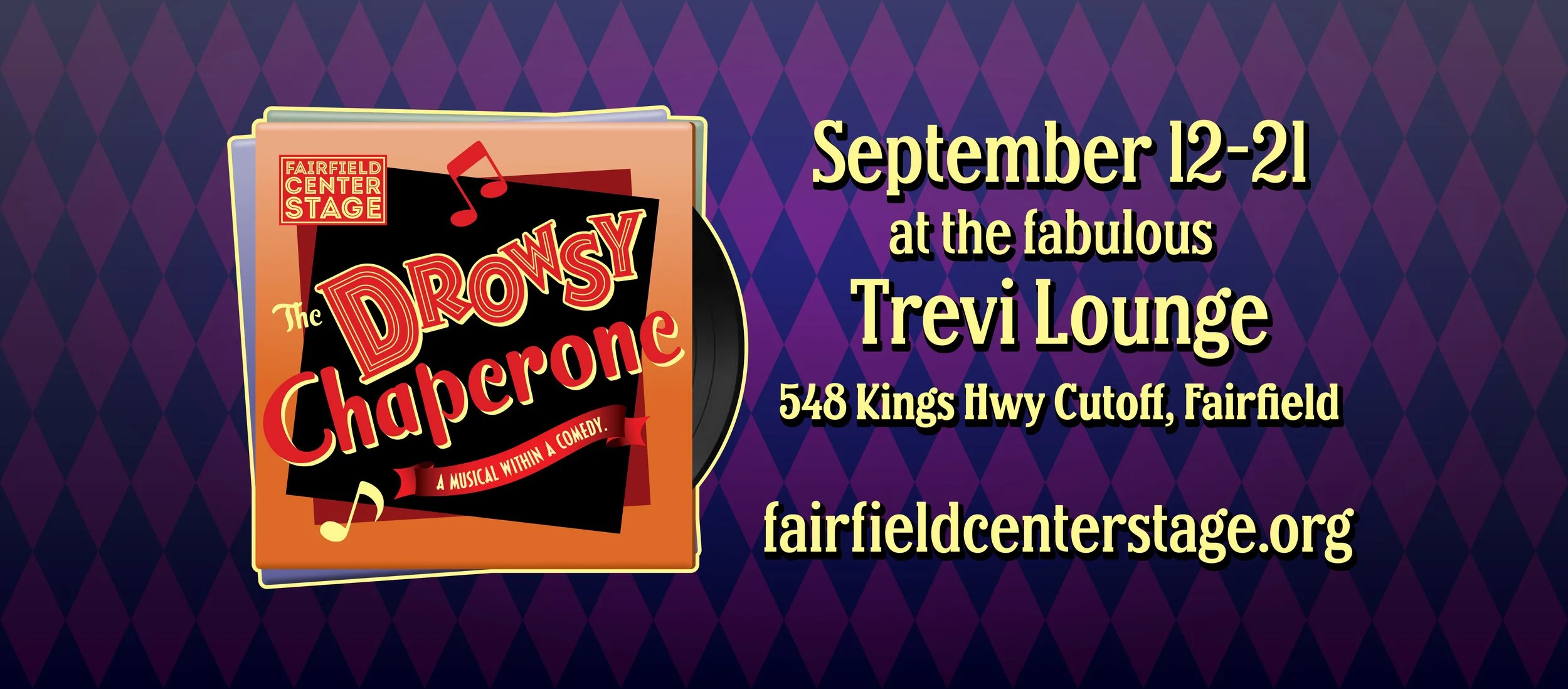 WHAT: Fairfield Center Stage (FCS), a community theater group, will present a production of the Tony award-winning musical comedy THE DROWSY CHAPERONE from Sep 12-21 at Trevi Lounge in Fairfield. Tickets ($25-$45) are available for sale now. FCS returns to Trevi Lounge following successful productions including BROADWAY DNA: DECODING A SHOWTUNE (2025), REEFER MADNESS (2024) FUN HOME (2023), THE ROCKY HORROR PICTURE SHOW EXPERIENCE (2018-2024), LA CAGE AUX FOLLES (2022), CABARET (2019), and HEDWIG & THE ANGRY INCH (2018).